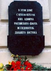 В Санкт-Петербурге в 2006 году на фасаде дома № 50 по ул. Чайковского была установлена мемориальная доска с данным текстом, в котором нами сделана купюра: «В этом доме с 1856 по 1876 год жил адмирал Российского флота исследователь Дальнего Востока ...»