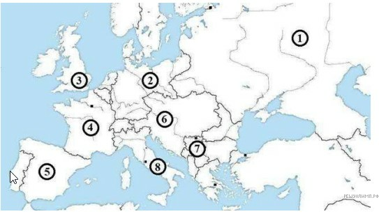Установите соответствие между фрагментами и номерами, которыми обозначены государства на карте. Обратите внимание на то, что среди номеров есть лишние.